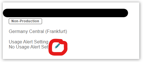 - On the required environment, select the edit (“pencil”) icon to edit the usage alert limit