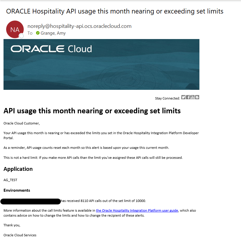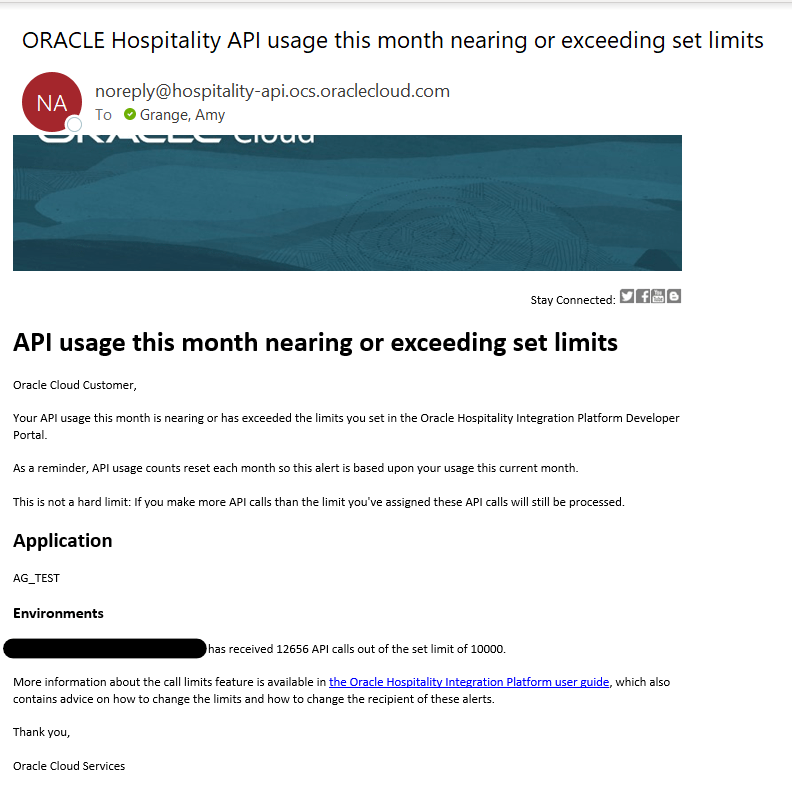 Bundled within OHIP 22.1.1, we now have access to “Call Usage Alerts“. What is a “call usage alert”, I hear you say. Well.. these are automated alerts which ultimately send an email to a nominated recipient in the event that the API usage is nearing (or has exceeded) the limit that you, as an administrator, have set for an environment in one of your applications.