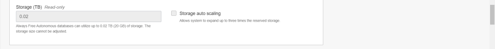 Step 7: Configure your database. Here I will leave the default options which for an Always Free ATP database is 1 OCPU core and 20GB of storage.