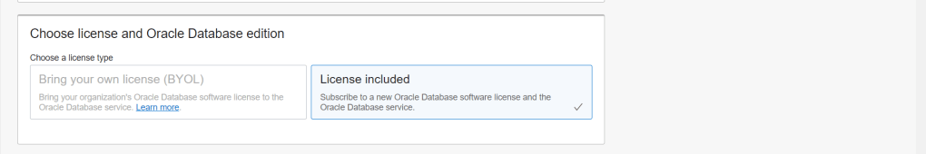 Step 10: Select license type. For Always Free, there is again only 1 option here to select