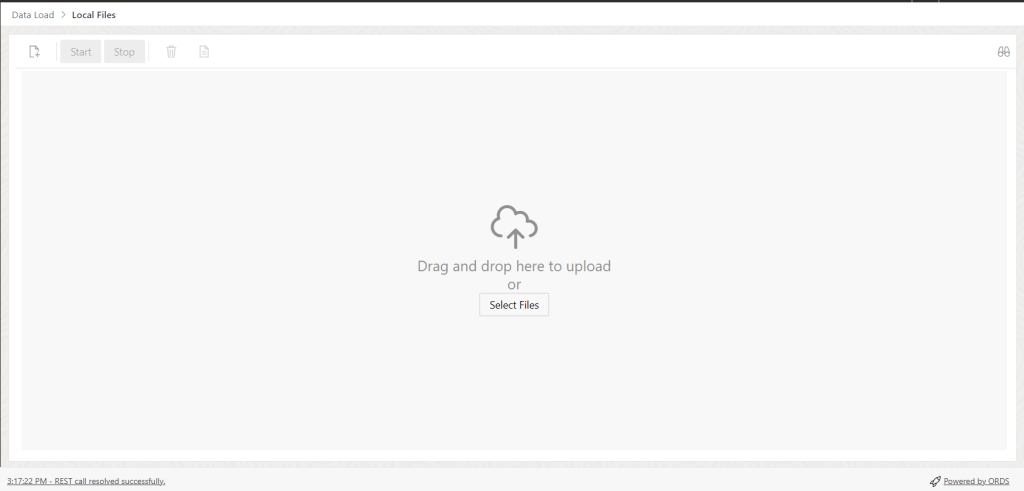 Step 3: You will presented with a file load page. You can either drag and drop files to the palette or use the “Select Files” button to browse your local machine for a file