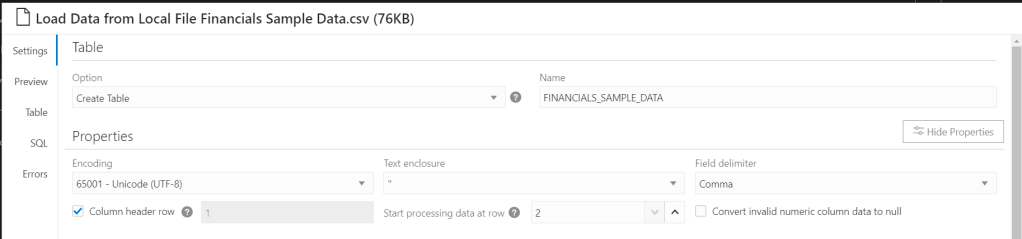- Drop table and create new table : If the database table already exists, this option will drop the table (and the data contained in the table), recreate the table and then load the data from the file into it