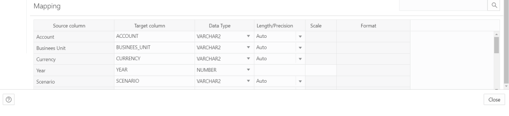 The tool itself examines the file that has been uploaded and presents recommended data types (and it does a really good job of this too). When you have finished reviewing/amending the options, click “Close”.