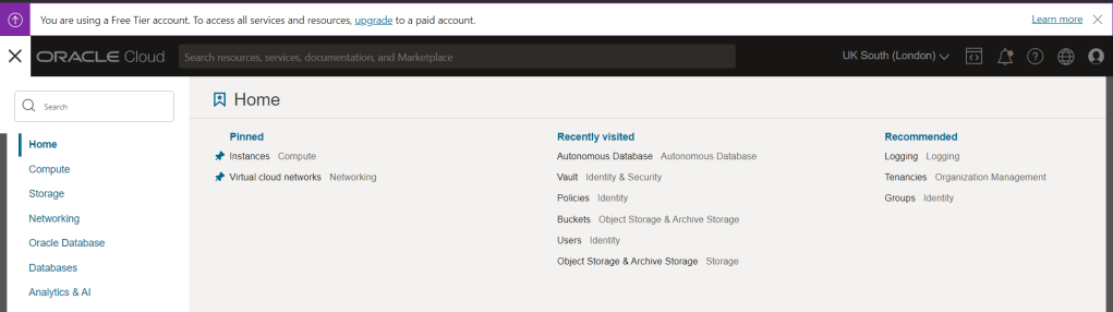 Note 1: The details in this post assume that you already have an Oracle Cloud free tier (or upgraded!) account. If you don’t you can get one here.