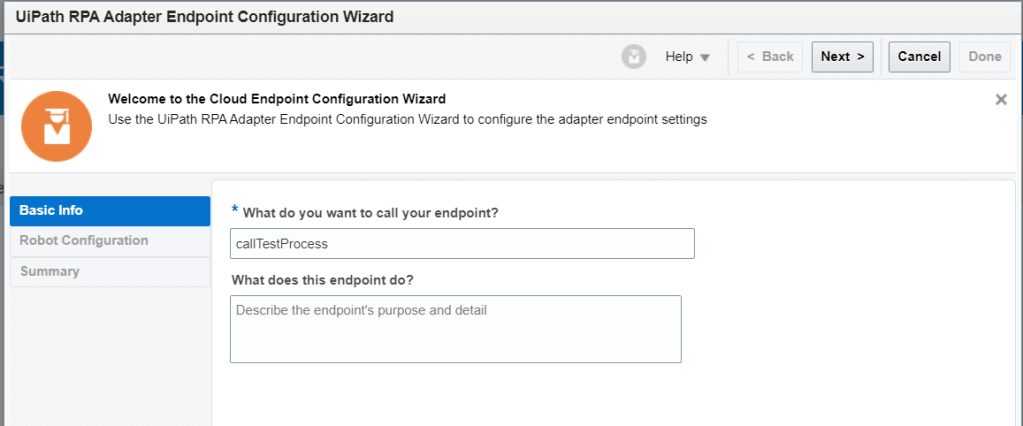 Step 9: Enter basic information to the endpoint configuration wizard and click “next”