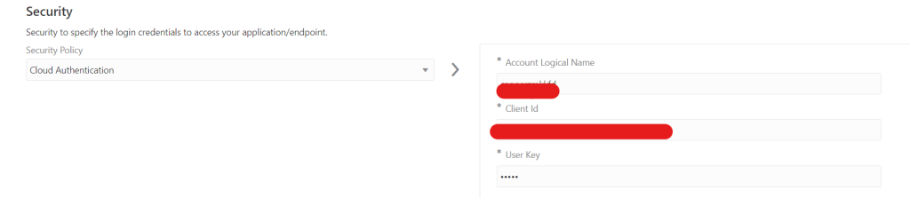 Before the connector is ready to be used, more security information is required. Click “Configure Security” and select “Cloud Authentication”: