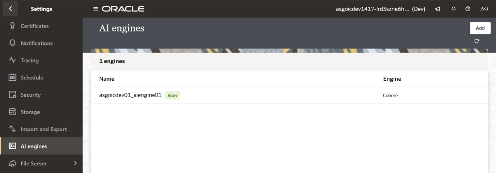 Step 11 – Click “Add”. You will now see your configured AI engine.