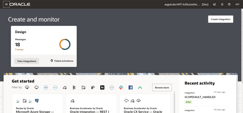 Step 6 – This will open the Oracle Integration service console