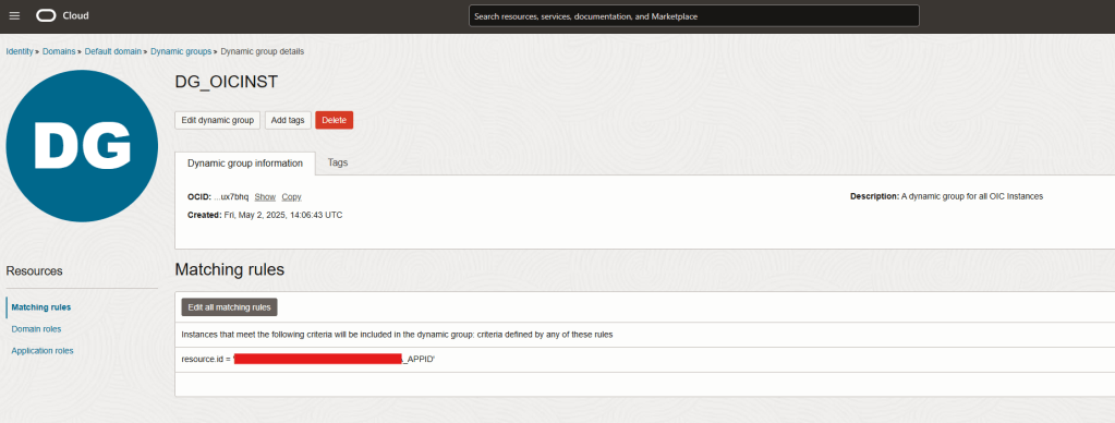 Step 7 – Now, you have a dynamic group created of which your OIC instance is a member of