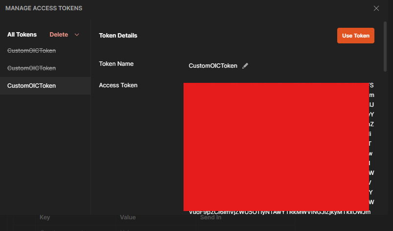 Step 6 – When authentication is completed, click “Use Token”. This will assign the token to the token name you gave it in step 4 (mine is CustomOICToken)