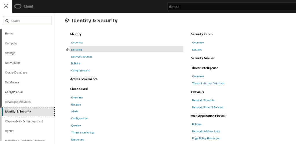 Step 3 – Select “Identity & Security” and then “Domains”