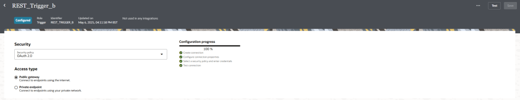Make sure to select the request type that you defined in OIC. e.g POST, GET, etc. (Mine was POST)
