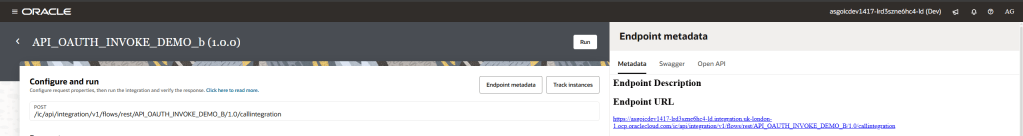 Step 2 – Enter your endpoint URL for your OIC integration. If you don’t know how to find this, you can navigate to “run” your integration in OIC and click on “Endpoint Metadata”.