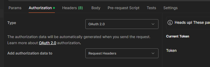 Step 3 – Select the “Authorization” tab and choose OAuth 2.0. This should default to “Request Headers”, but if it doesn’t, then you should make sure that is selected.