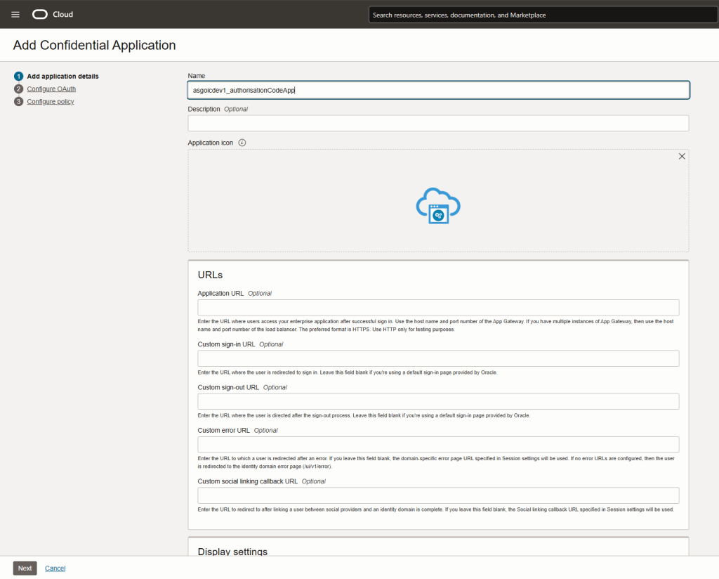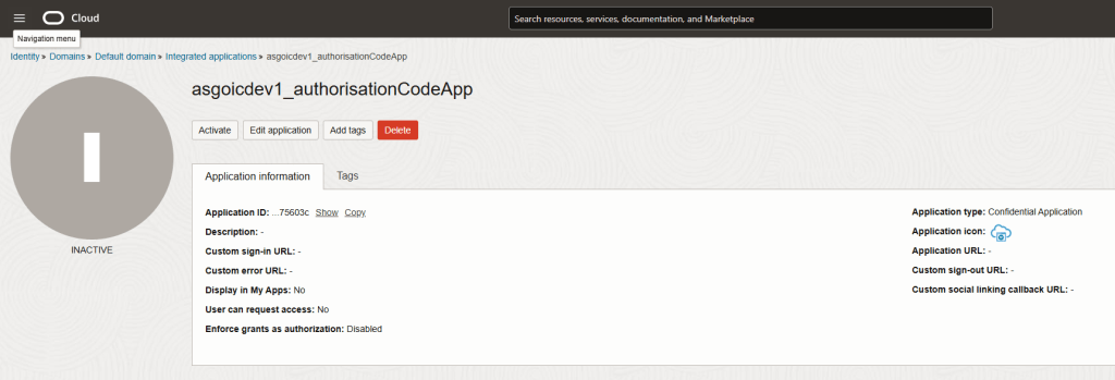 Now, to be able to call the OIC integration using the authorisation code grant type, we need to create a confidential application. To do that follow the steps below: