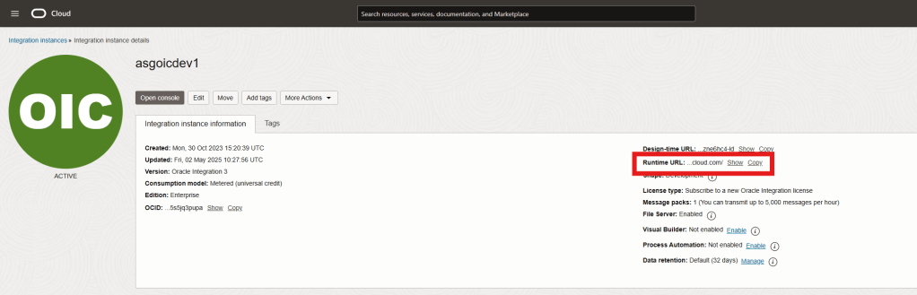 Step 5 – You’ll find your OIC runtime URL here!