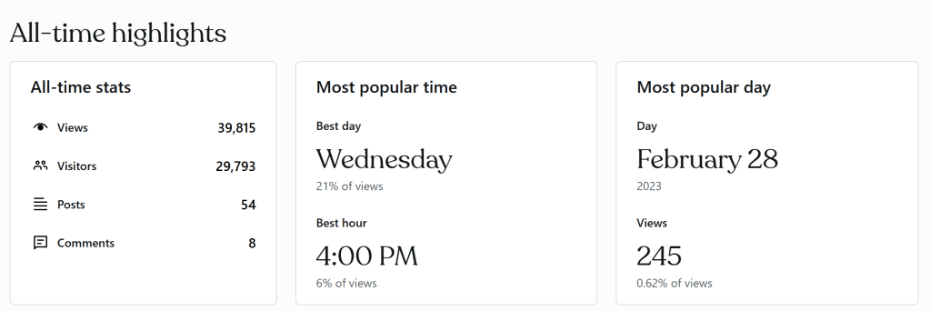Here are some statistics of my blogging journey in recent years. If I reflect, I started really small. To some, this site is still “small”, but I’m really proud that I’m reaching so many of you with my content and seeing year on year growth – though, I won’t count my chickens until they have hatched.. I’ll only grow on 2024 if I continue to keep sharing valuable content with you all.