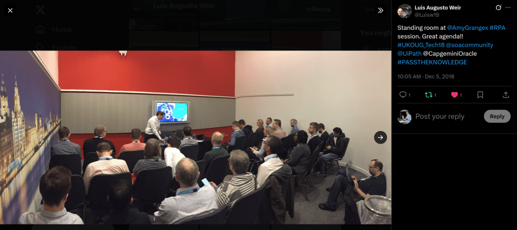 Here is Luis Weir posting about my first ever tech session at UKOUG in 2018!